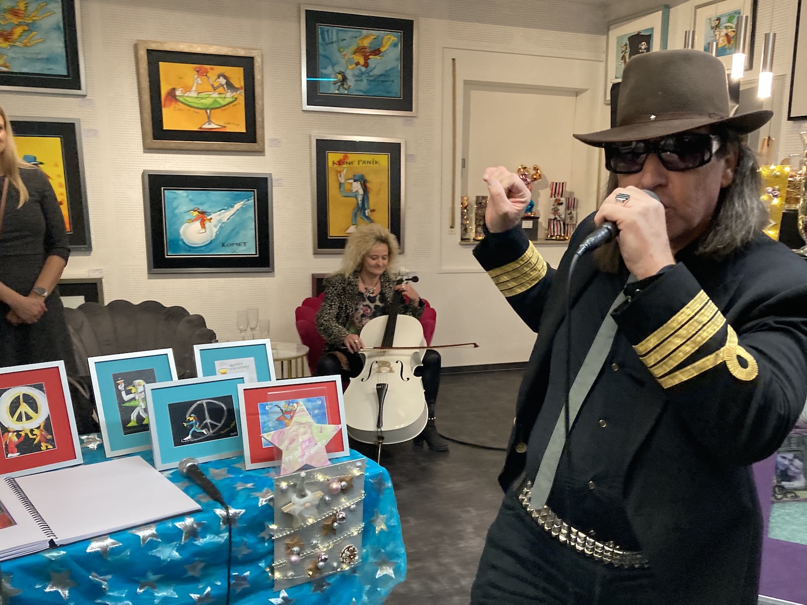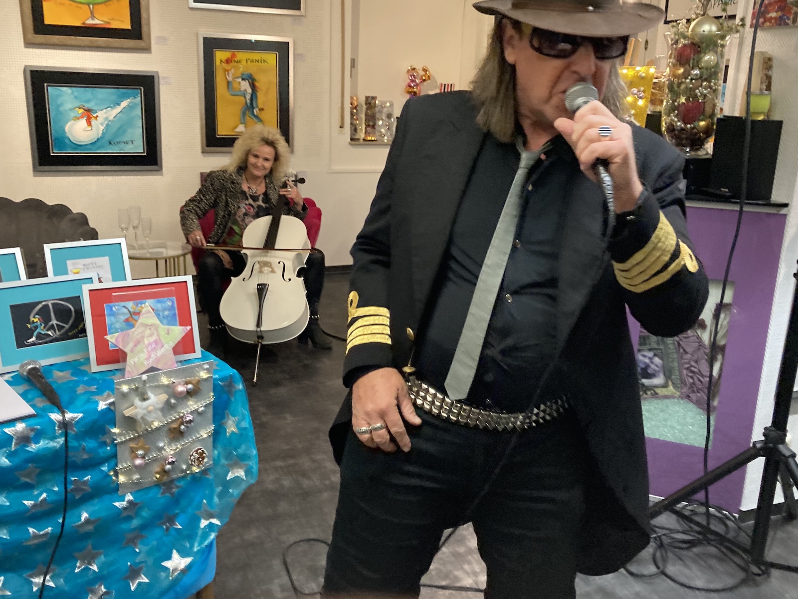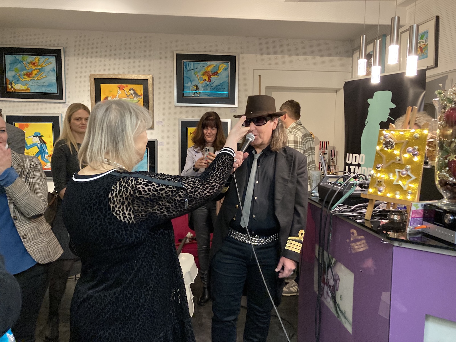 Unser Ehrengast zur Ausstellungs-Eröffnung: Der Panik-Pate RUDI WARTHA Das Udo-Double gab mit Sängerin Anke die größten Udo-Hits zum Besten.